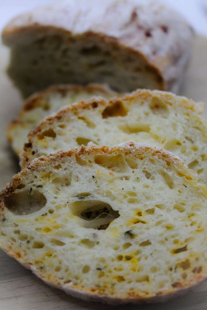 Here are the steps to make this no-knead cheese and herb bread.